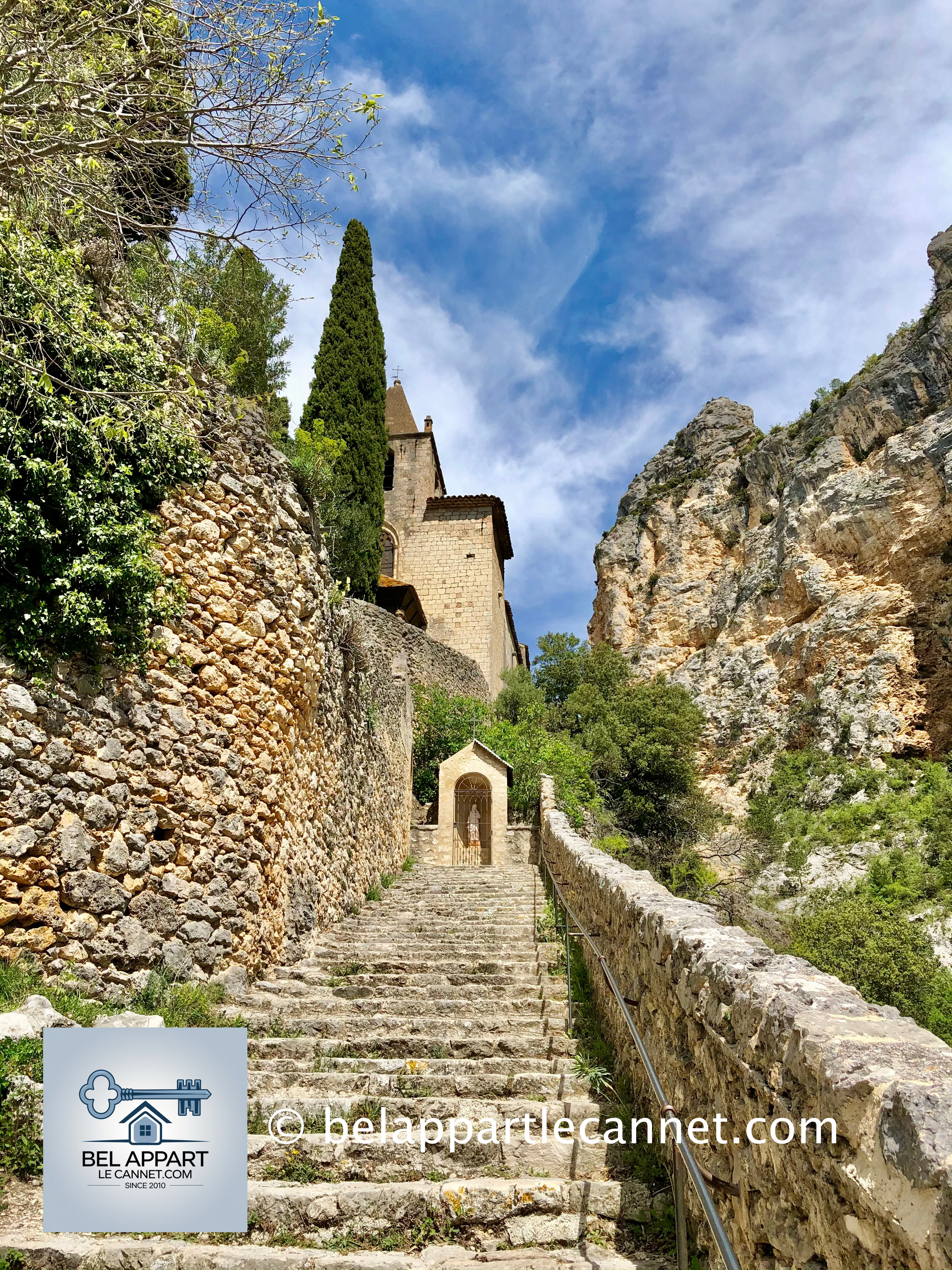 Perchée à 830 m d’altitude, elle surplombe majestueusement le village, coincée entre deux falaises, offrant une vue spectaculaire depuis le sommet du chemin de croix chapelles.