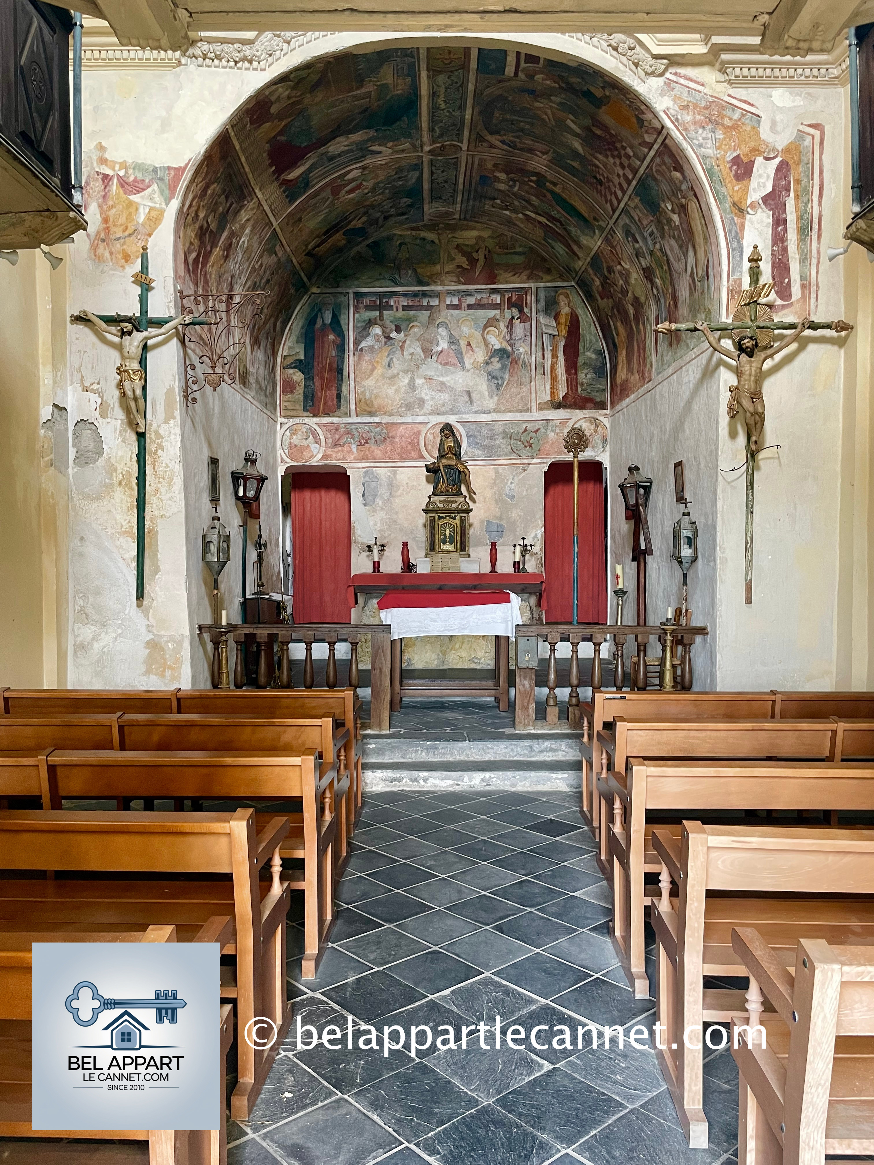 Inside, visitors can admire a monumental fresco painted by Giovanni Canavesio in 1495, depicting a Passion of Christ with remarkable emotional intensity and artistic detail.